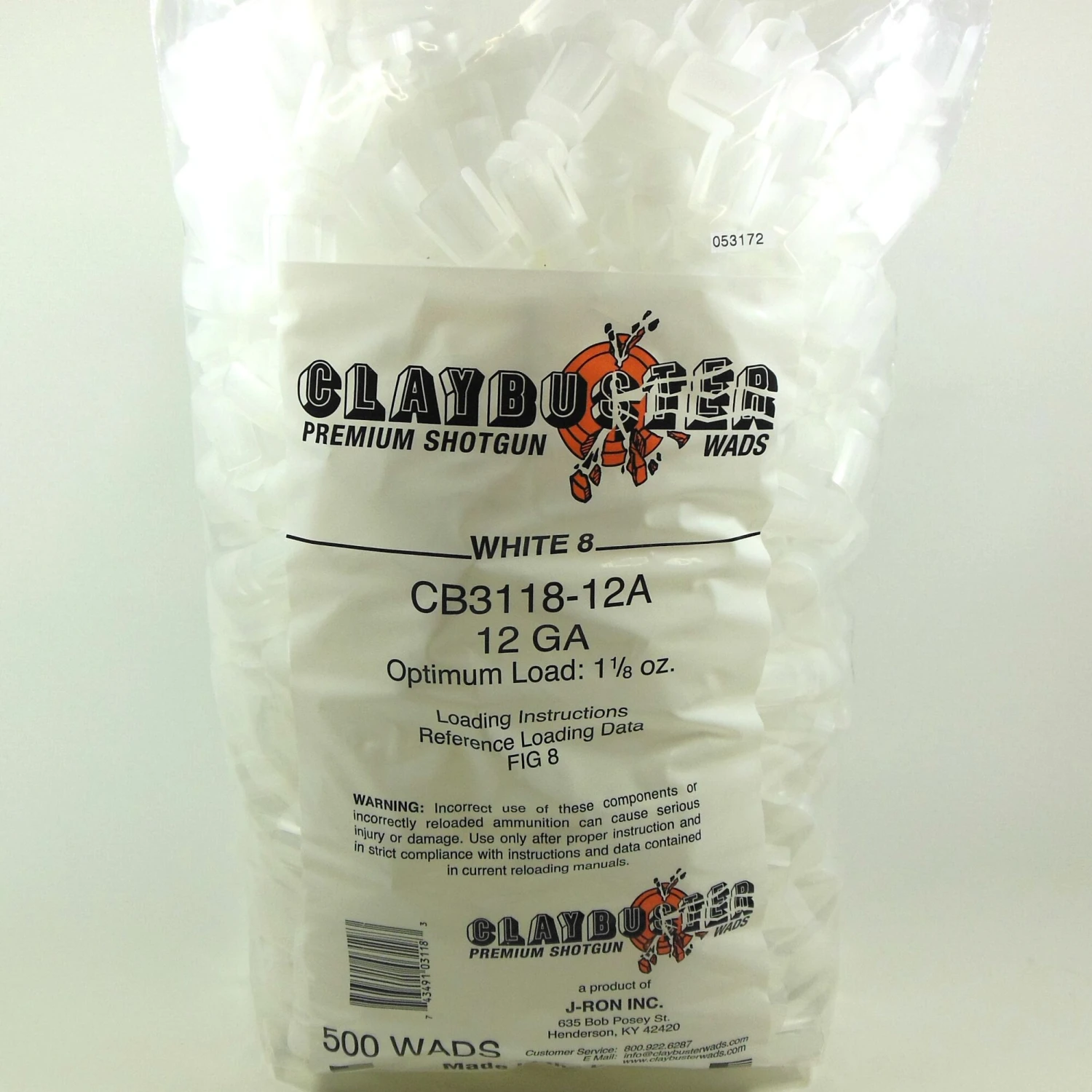 Claybuster 12 Gauge Remington White 8 Shotshell Wads (500)