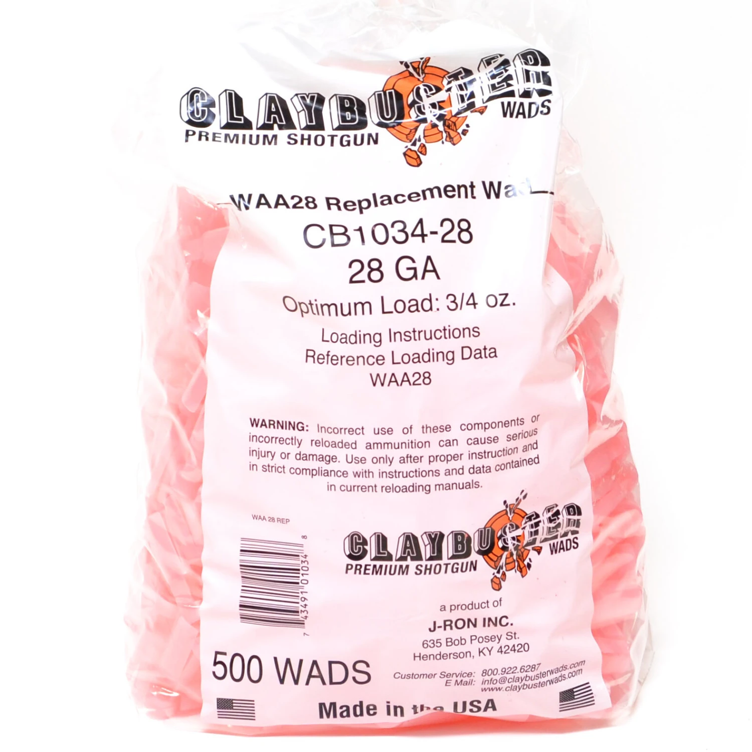 Claybuster 28 Ga Shotshell Wads for replica of the Winchester AA 28 gauge Shotshell wad (500)