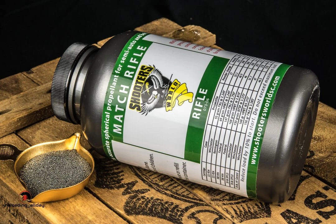 Shooters World Match Rifle Powder is highly versatile, and has shown exceptional accuracy in .223 Remington, 5.56mm, and .308 Winchester. It is similar in burn speed to Accurate® 2520, CFE™223, Reloader®15 and IMR 4064. It holds the broadest utility across all moderate rifle propellants.
