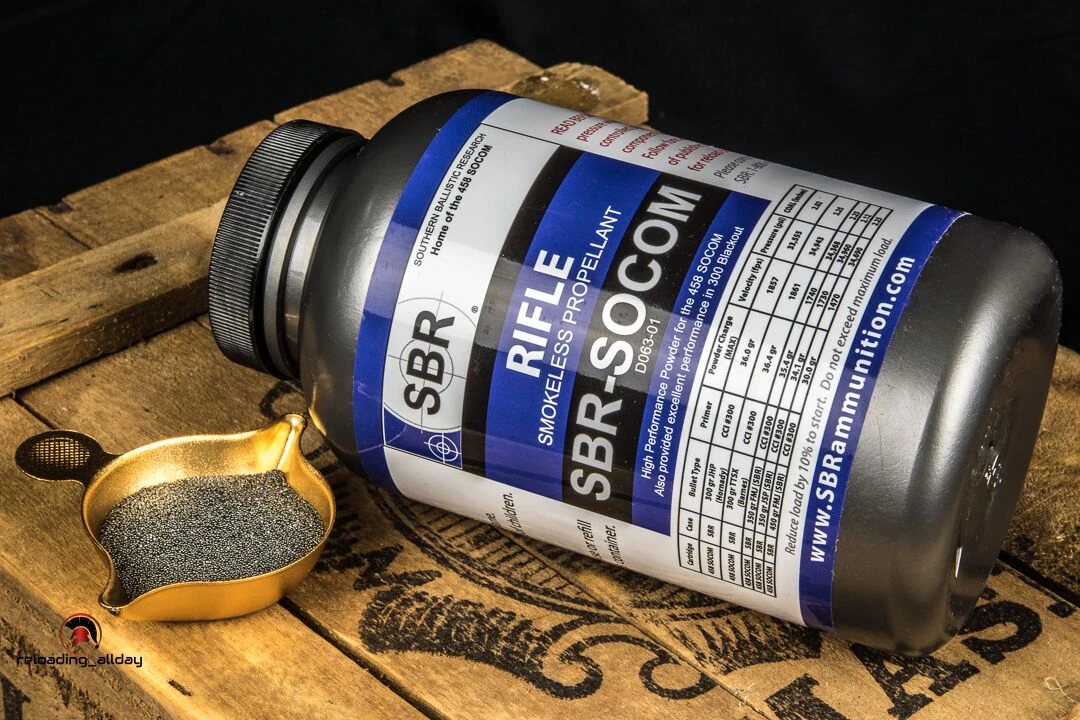 Shooters World SOCOM Powder was specifically designed for the 458 Socom. SBR-SOCOM powder is a high density, double based, ball powder. The 458 SOCOM cartridge was developed by SBR Ammunition. This powder is an ideal choice for moderate to heavy bullets in the 300 – 450 gr weight range.