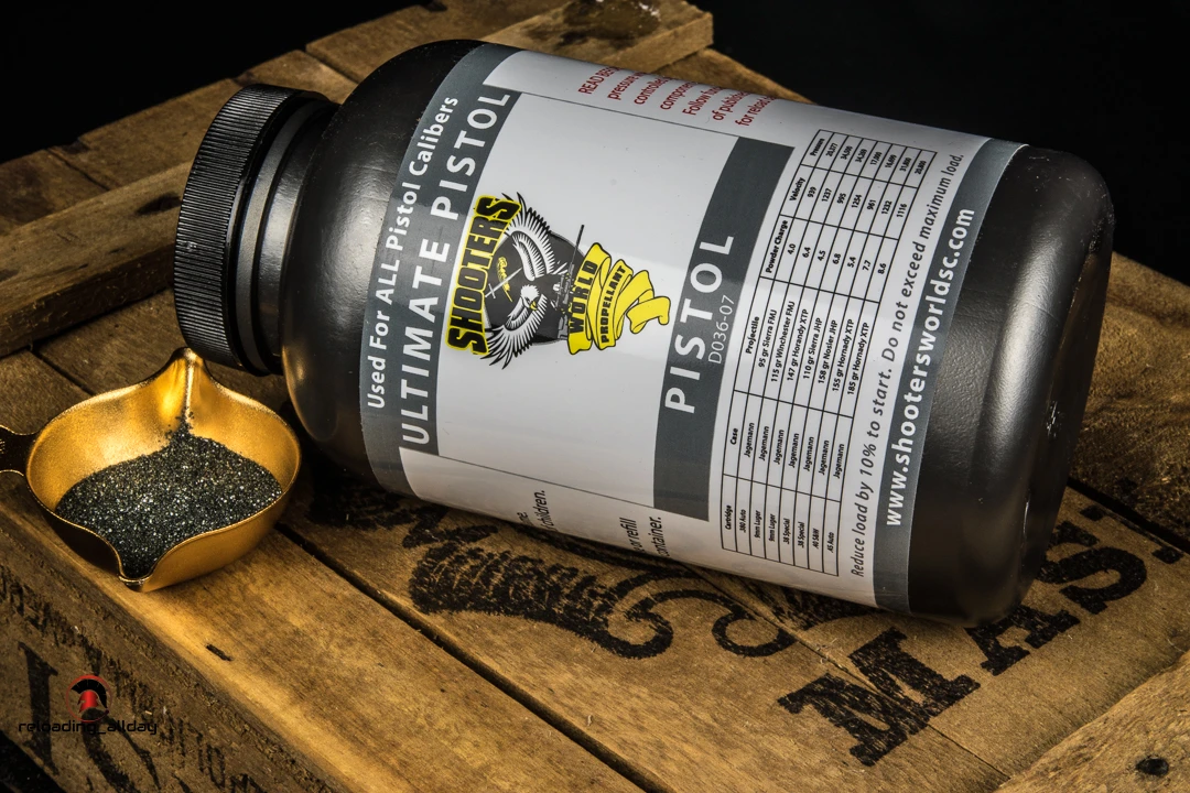 Ultimate Pistol also works well at reduced charge weights for low-recoil applications. Shooters World tests and publishes real-world starting loads for all of our pistol propellants. We purposefully take our test load charge weights down to failure; sticking bullets in our barrels, squibs, short strokes, stove pipes and every other ballistic anomaly. Then, we clearly annotate with published reloading data where a hand loader can be assured of starting success.