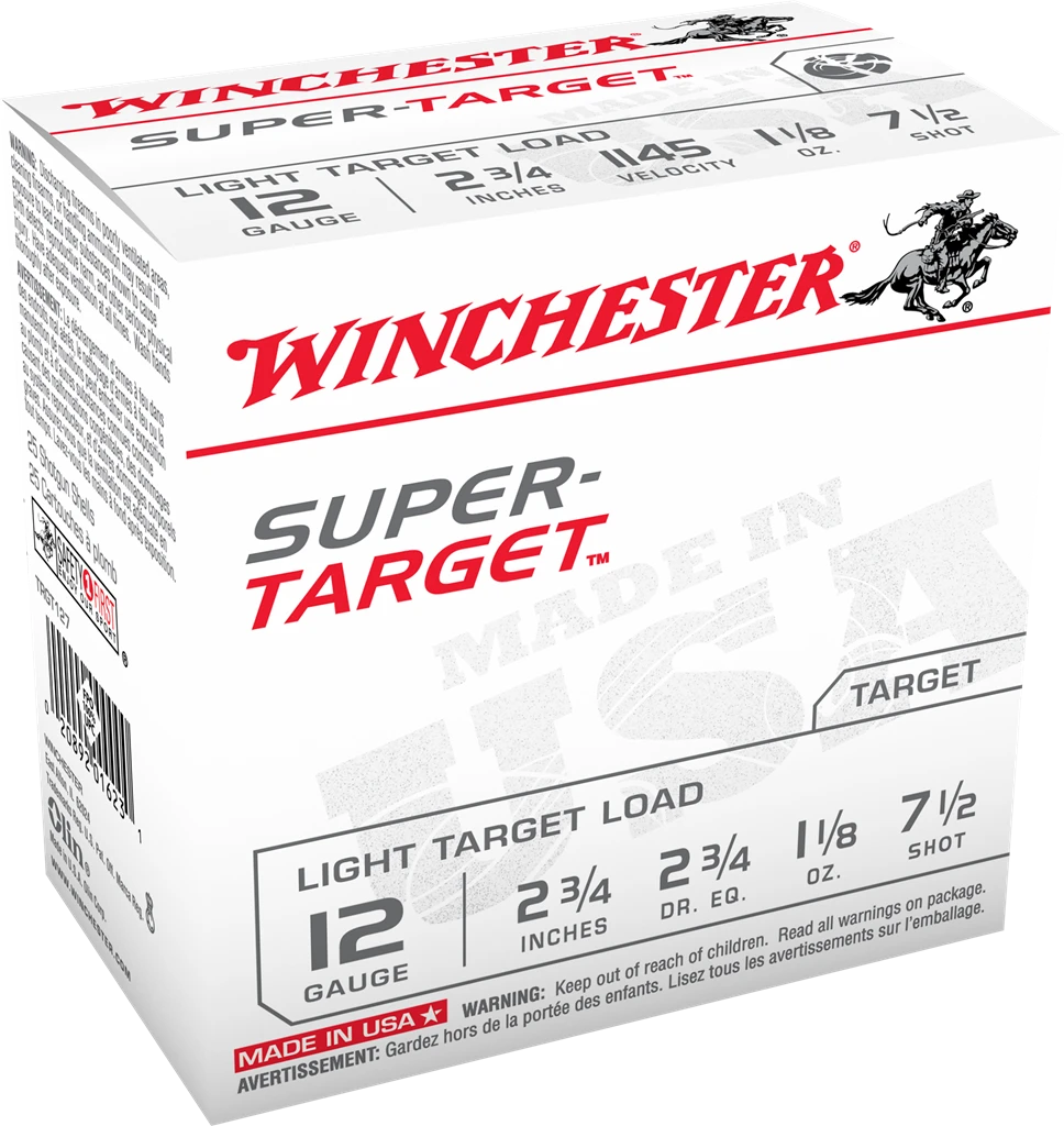 Winchester Shotshell Ammo 12 Ga 1 1/8 Oz #7.5 2 3/4″ 2 3/4 Dram Super Target 1145 Fps (25)